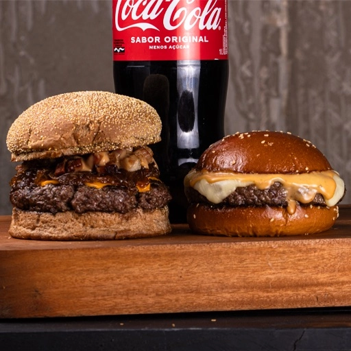 Hambúrguer Obra-Prima + Hambúrguer Burguinho + Coca-Cola 1l